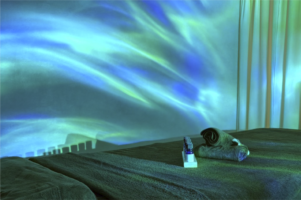 お部屋の照明がまるで海の中にいるような、ゆらゆらとした幻想的な光で、それだけで「ここに来てよかった」と思わせてくれる心地よさでした。