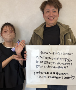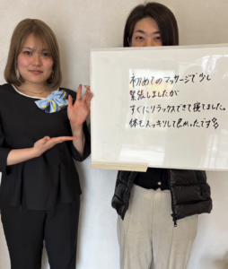 ただ揉むだけではなく、今の体の歪みなどをしっかりチェックしていただけたのが良かったです。